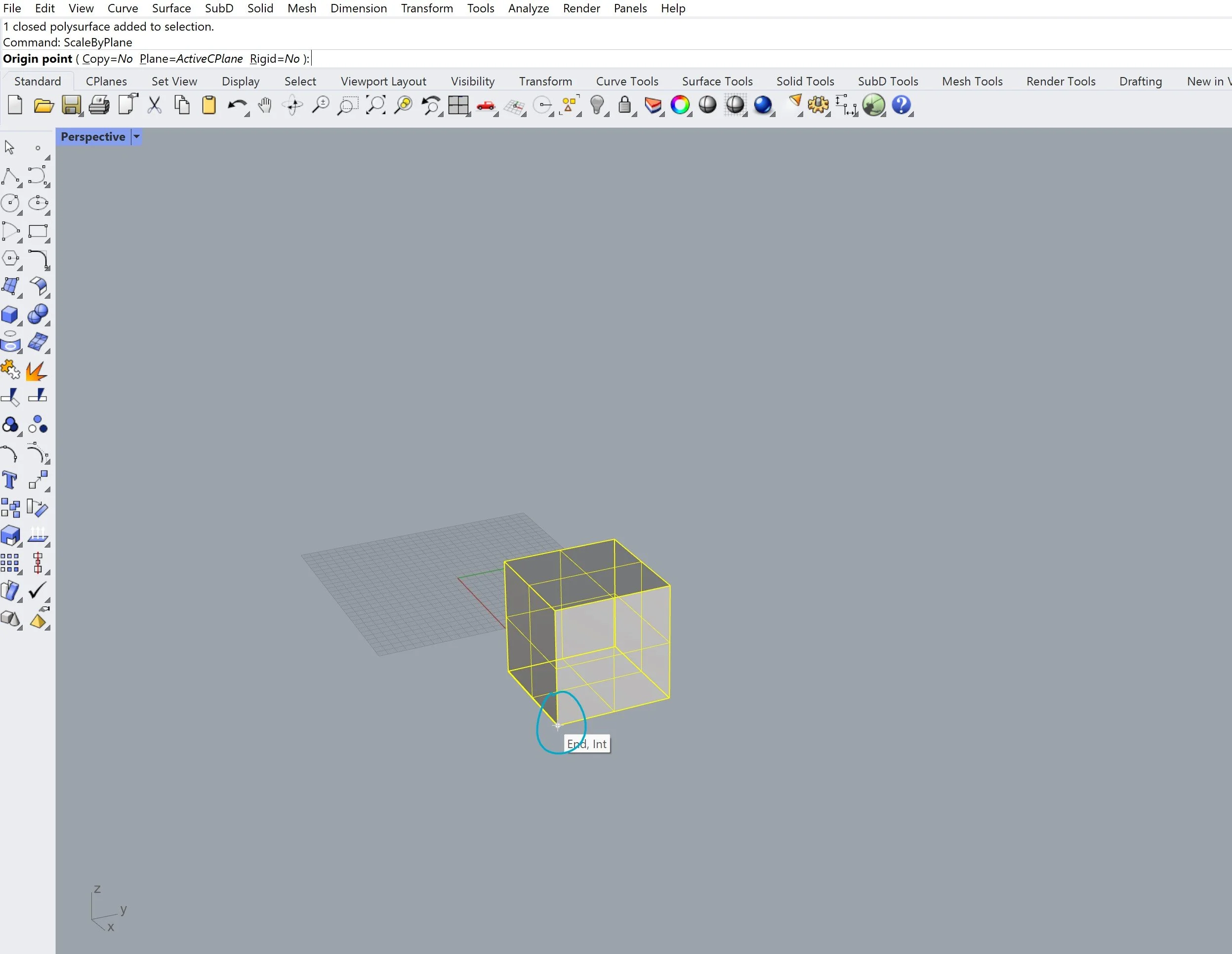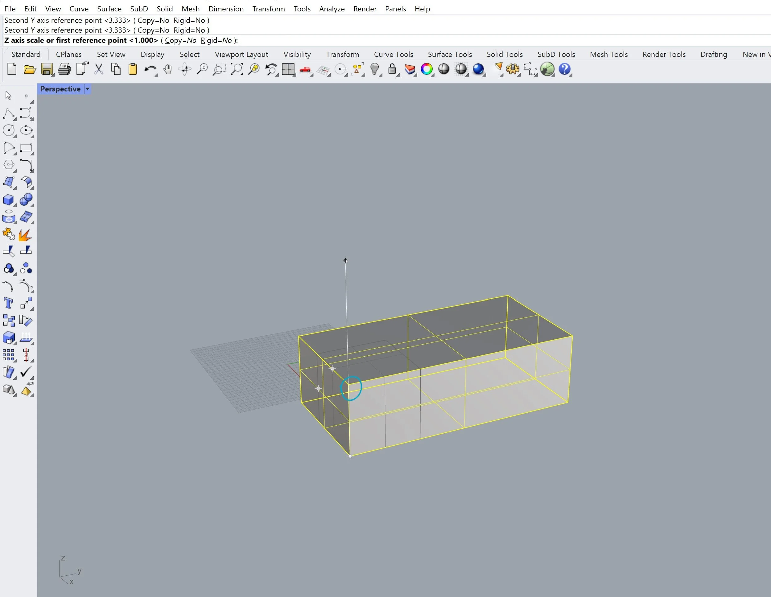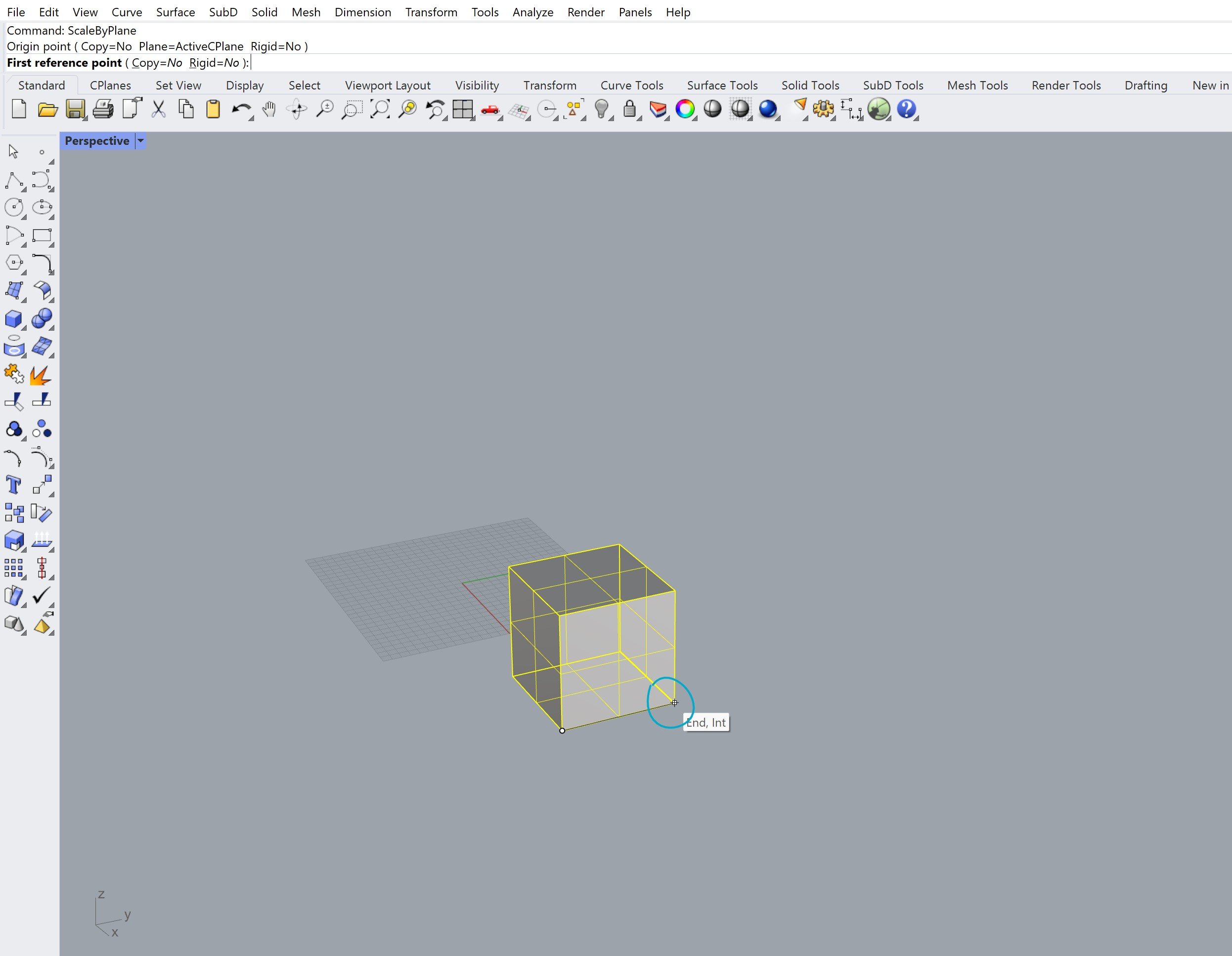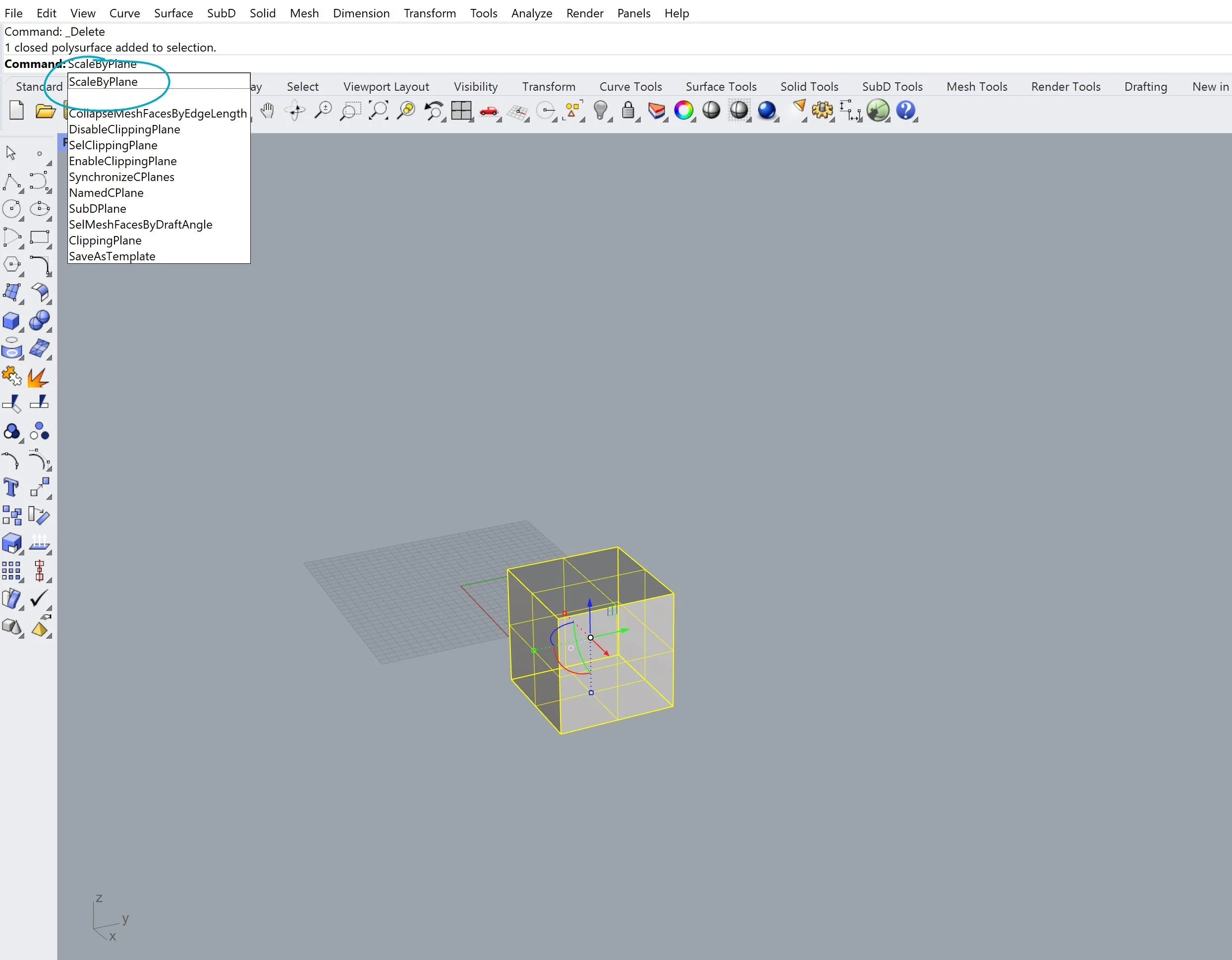Other ways to scale in 3D would be using the commands ‘ScaleNU’ and ‘ScaleByPlane’. Whilst both of these commands are different from each other, they both scale unproportionally, unlike ‘Scale’ which enlarges and reduces size uniformly.