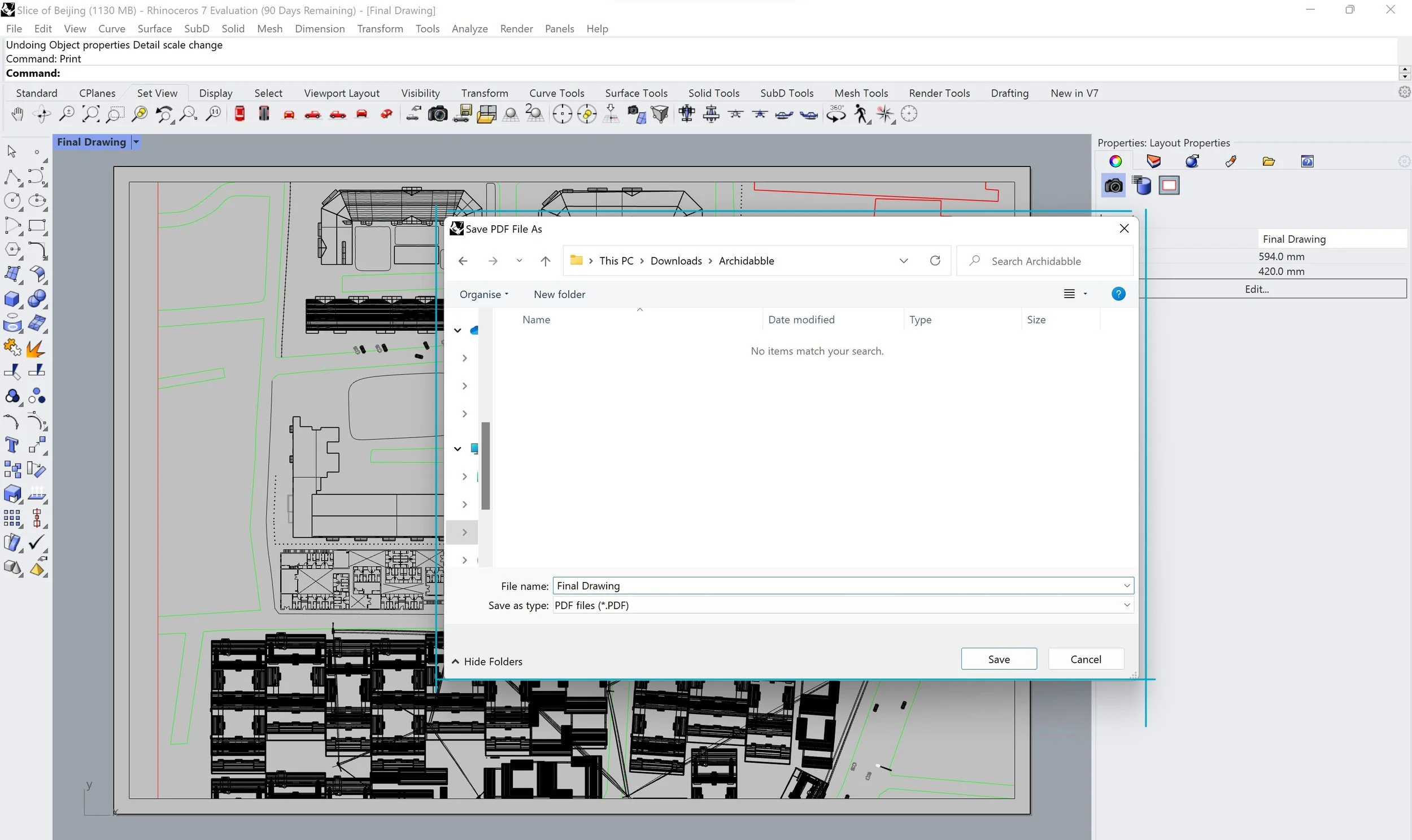You’re all done! You have successfully generated an A2 PDF from Rhino with your drawings scaled to 1.500.