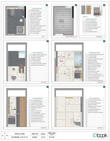 Assembly drawings zoom into each room and are made up of the elevation drawings of the room as well as a larger-scale plan. Each room would have its own AD and is used to understand in better detail for setting out fixtures, floor/wall/ceiling finishes, room heights, window heights, any potential joinery and more. It’s the next level to detail once you get a grasp of the entire project through the GA drawings.