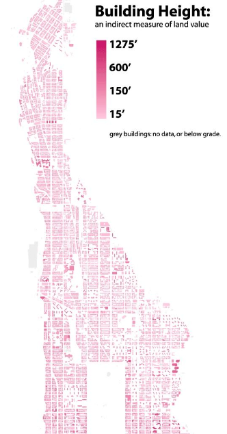 Mapping building heights as part of site analysis can be useful for a variety of reasons. One of the main insights it provides as part of your research is an overview of the site context. It can be useful in identifying existing structures, such as tall buildings that might cast shadows on the site or obstruct views, or low-lying buildings that may provide a visual buffer. When designing a building, it is important to consider the heights of the surrounding buildings to ensure that the proposal responds to site context and the urban fabric at a larger scale. As a result of the products of this map, you can begin to consider and discuss how the surrounding buildings impact the natural light, views and environmental conditions around your design proposal,
